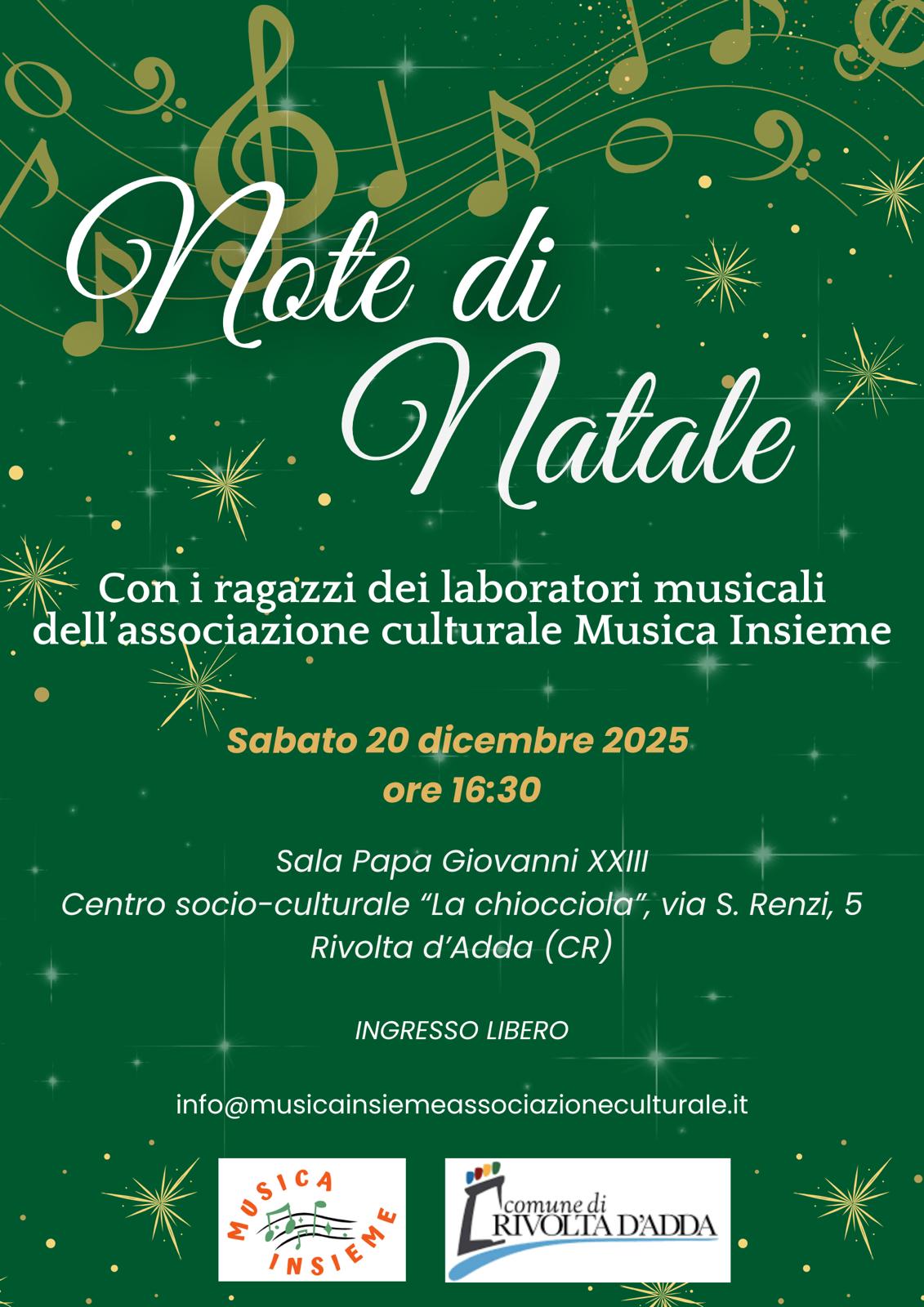 Con i ragazzi dei laboratori musicali dell'Associazione Musica Insieme. Sabato 20 dicembre, ore 16:30, Sala Papa Giovanni XXII