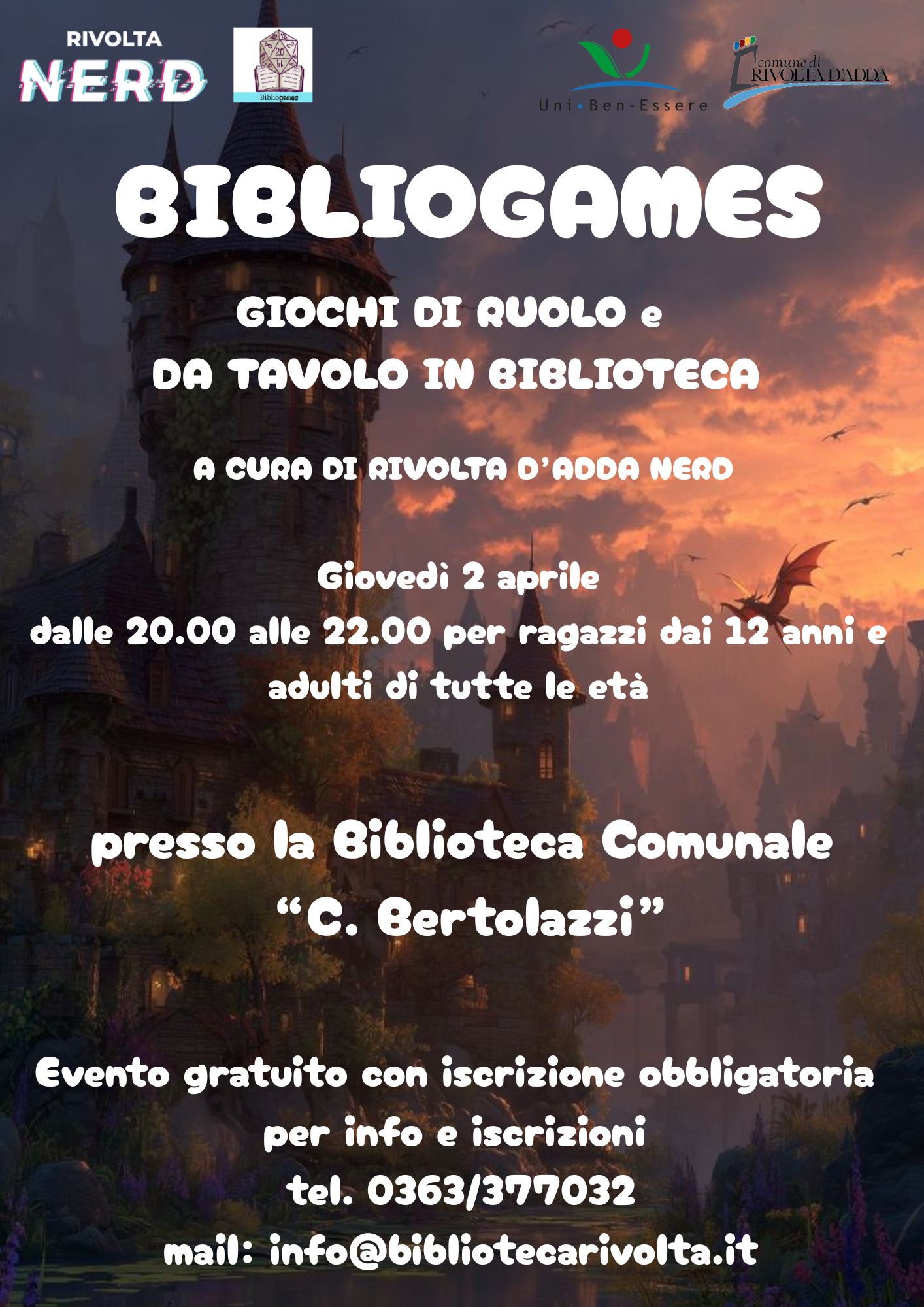 Giovedì 02 aprile dalle 20.00 alle 22.00 presso la Biblioteca Comunale "C. Bertolazzi"