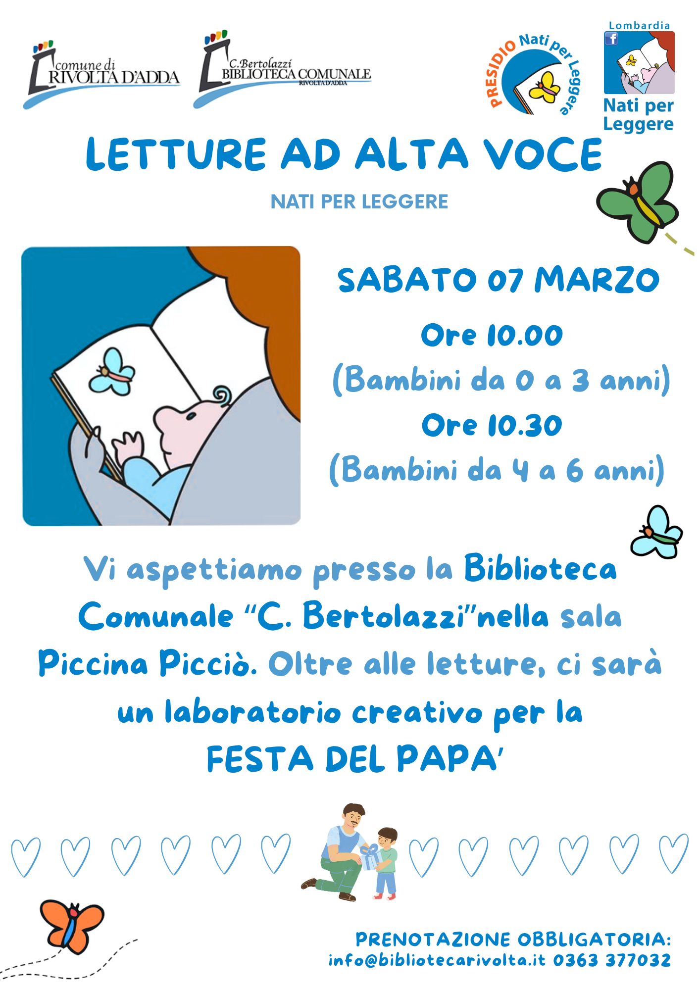 Oltre alle letture ci sarà un laboratorio creativo per la festa del papà